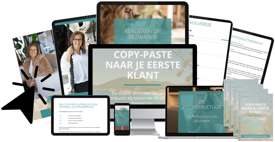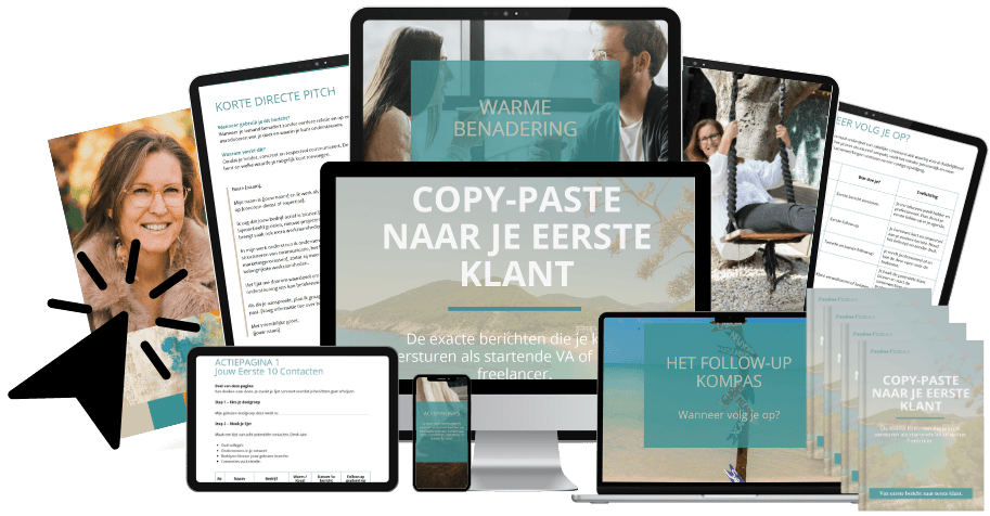 Copy-Paste naar je Eerste Klant geeft je de berichten waarmee je potentiële klanten professioneel en ontspannen kunt benaderen. Je hoeft niet langer vanaf een leeg scherm te beginnen of te twijfelen over formuleringen. Je hebt een duidelijke basis die je kunt aanpassen aan jouw situatie.